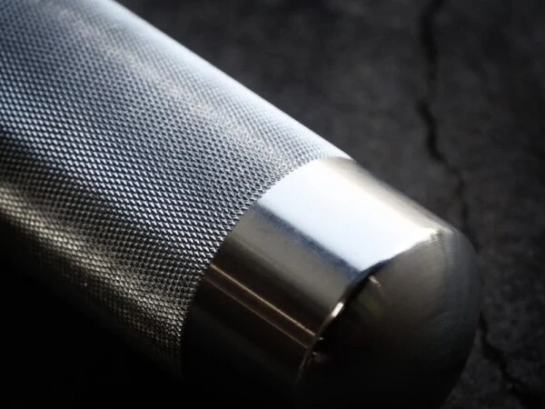 The middle of the tool is knurled with the same knurl type popularized by the Boomstick and PainPill, allowing for a shearing effect on the skin and providing a strong grip to the user.